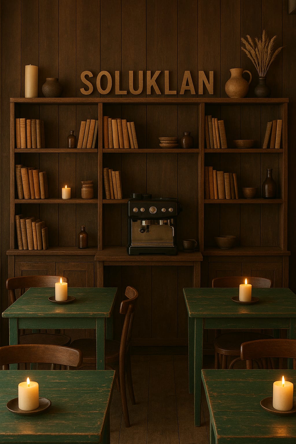 Soluklan Kitap&Kahve Evi, kitap tutkunları ve lezzet arayanlar için eşsiz bir deneyim sunuyor. Rahat bir ortamda, geniş kitap koleksiyonumuz arasında keşfe çıkarken, birbirinden lezzetli tatlılarımızı tadabilirsiniz. Kitap okumak ve keyifli bir şeyler atıştırmak isteyenler için ideal bir mekan yaratmayı hedefliyoruz.